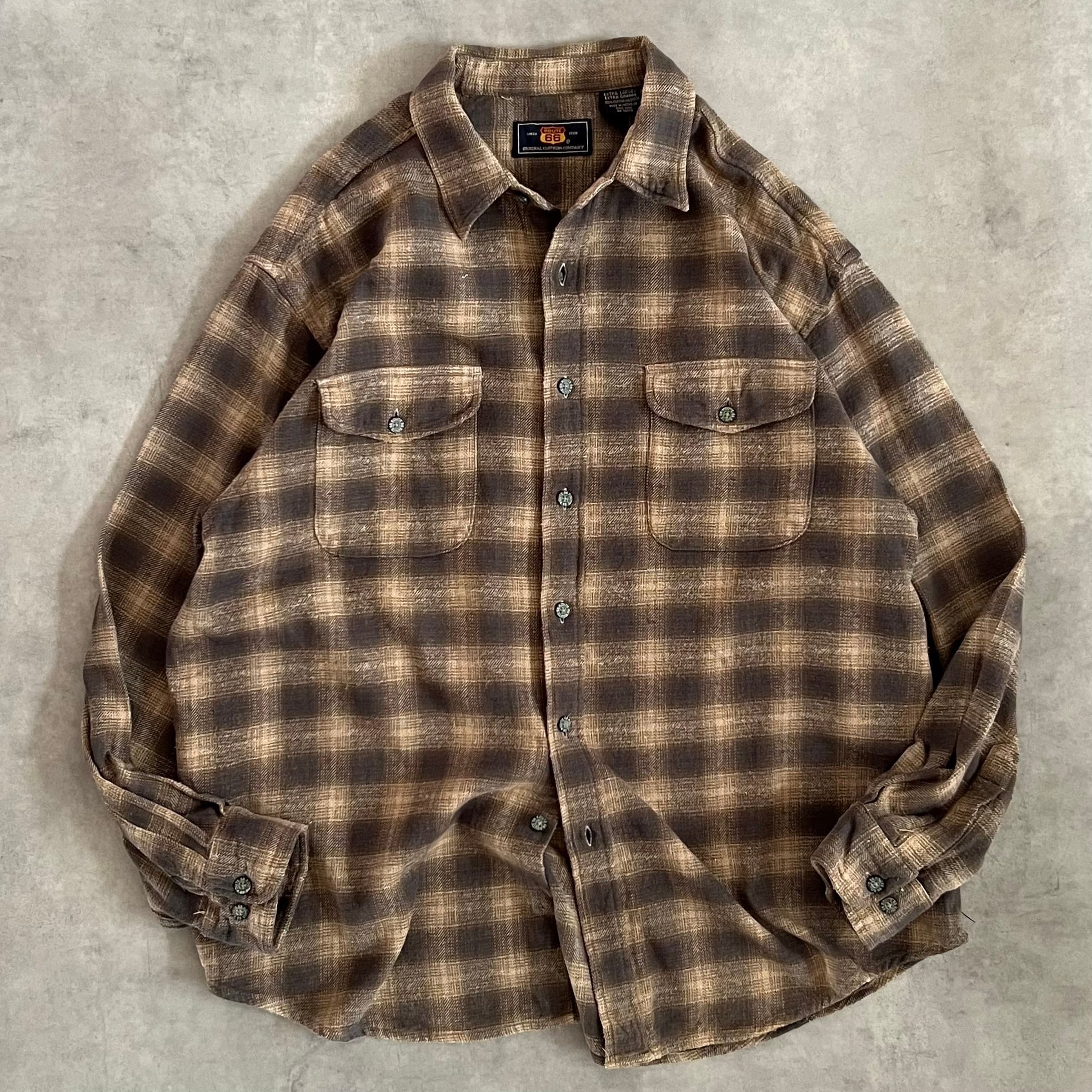 ROUTE 66 shadow check heavy flannel shirt シャドウ ヘビネル
